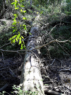 Joe quickly came to the crossing over Cherry Winche. It was actually an old hickory that had fallen years ago during some past high water. Someone had notched the top of the log with an ax. This made for a flatter and rougher walking