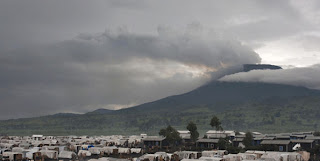 Photo: Displaced Persons Camp in shadow of volcano Goma, Congo