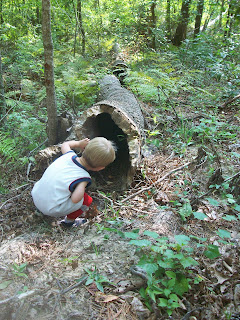 My grandson Jack Iles explores a hollow log. When I told him there might be a coon or possom in the log, he had to go inspect it.