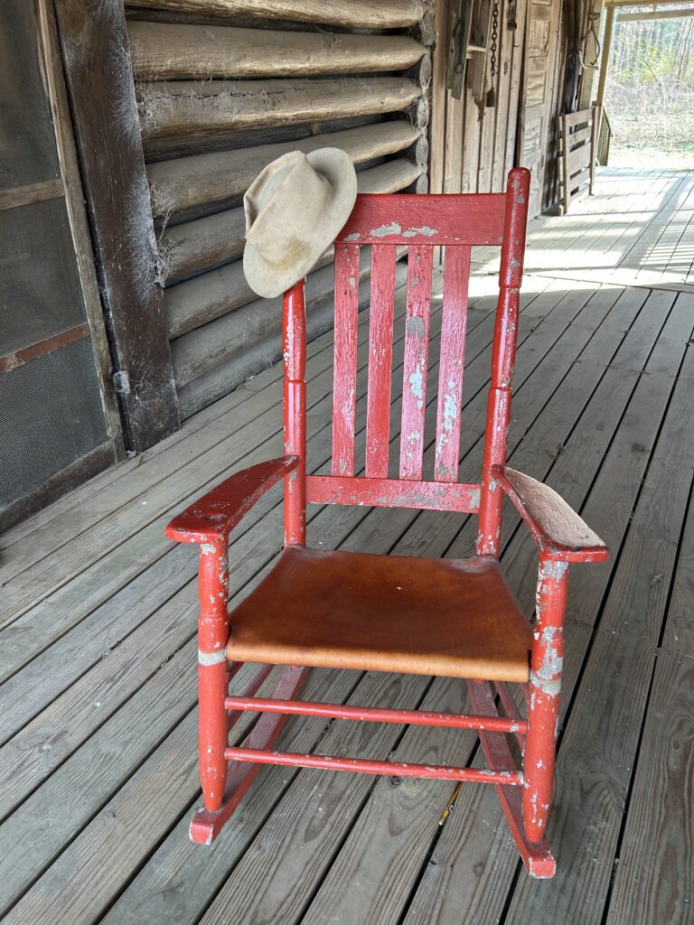 Our own red rocker on the dogtrot porch.